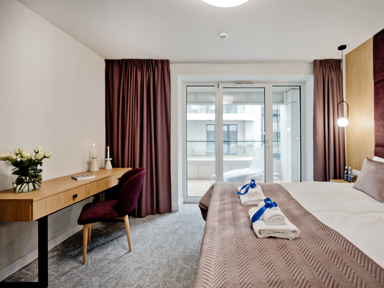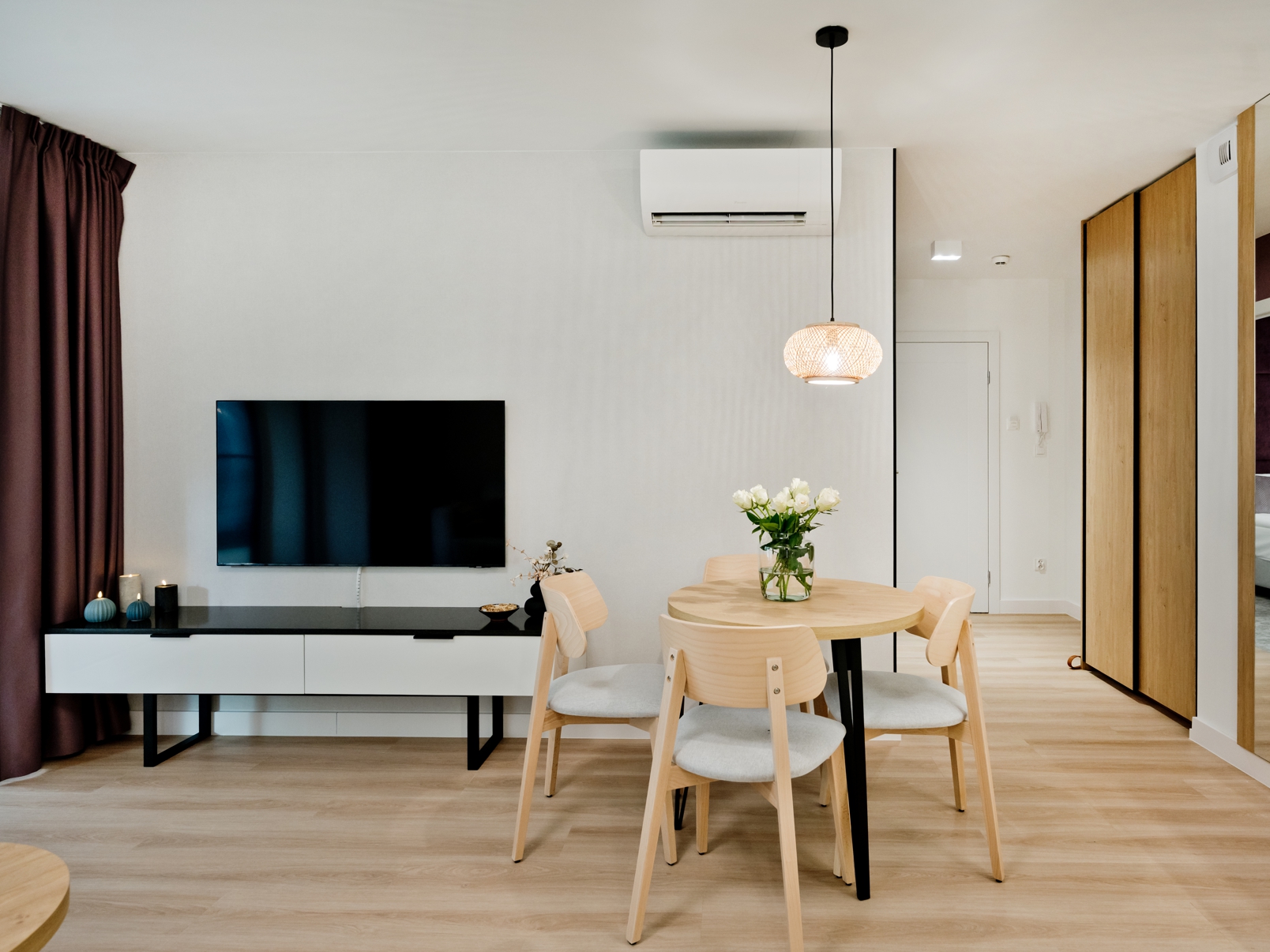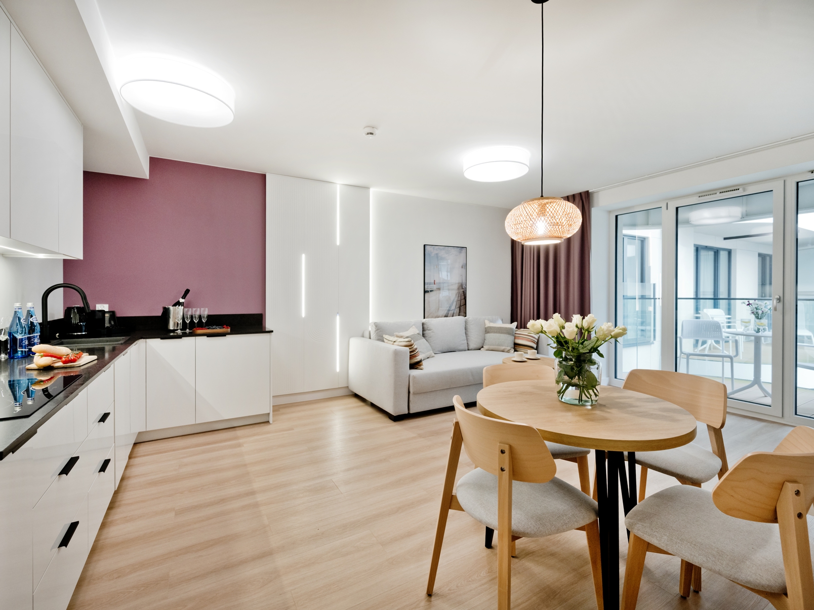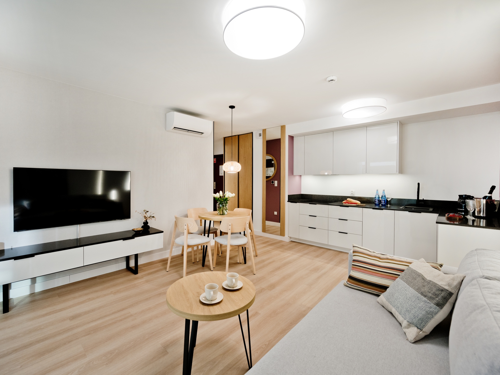 Goście apartamentu mają do dyspozycji szybkie Wi-Fi bez dodatkowych opłat, klimatyzację, w pełni wyposażony aneks kuchenny (płyta grzewcza, lodówka, ekspres do kawy, zmywarka), telewizor z płaskim ekranem oraz wygodną przestrzeń do wypoczynku i pracy. Apartament pomieści komfortowo do 4 osób – to doskonały wybór zarówno dla par, jak i rodzin z dziećmi. Do apartamentu przynależy miejsce postojowe na terenie hotelu.